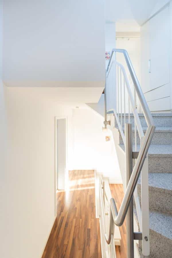 GESCHOSSTREPPEN: Stahlbeton mit Granitbelag „Granit Imperial White“
