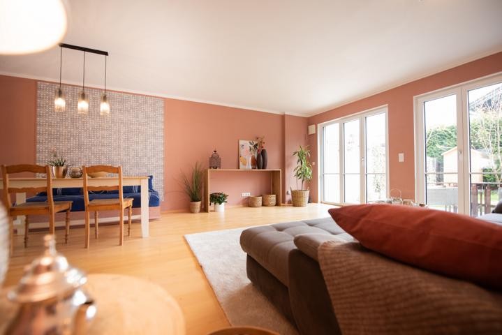 Mit insgesamt fünf Zimmern, 2 Bädern + Gäste-WC bietet die Immobilie ausreichend Platz für die ganze Familie. Der großzügige Wohn- und Essbereich bildet das Herzstück des Hauses und öffnet sich zum sonnigen Südgarten – ideal für entspannte Stunden im Freien. Der Vollkeller bietet zusätzliche Nutzfläche und vielseitige Möglichkeiten, während Garage und Stellplatz komfortables Parken gewährleisten.